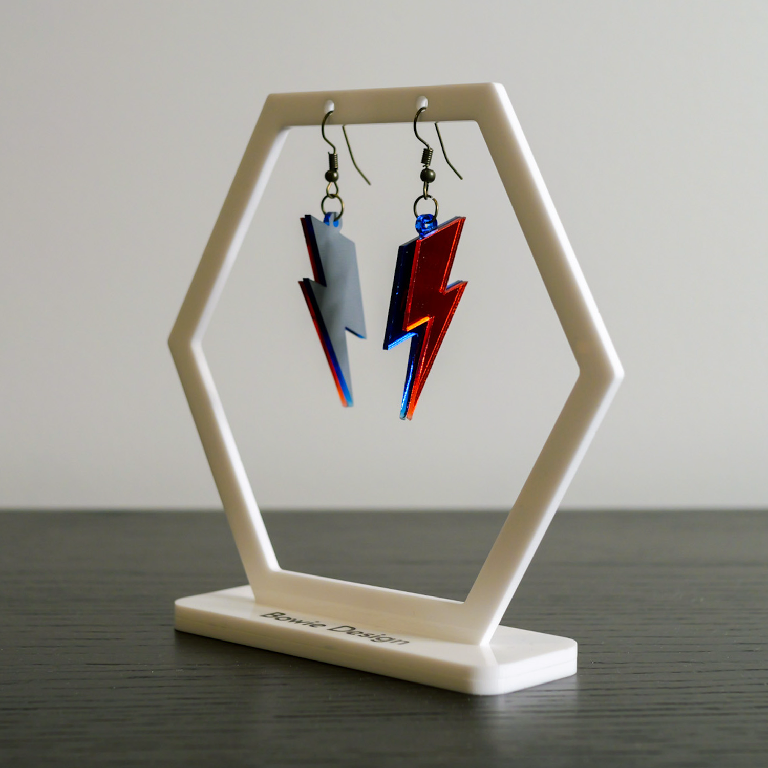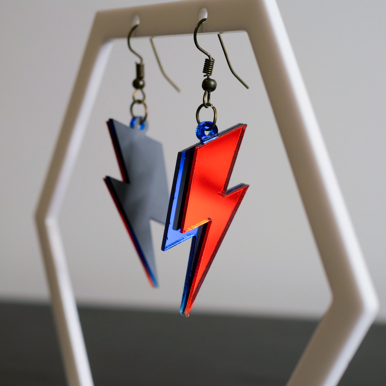 We have the name but are definitely no relation of the late, great, David Bowie. We are fans though, so we just had to create these lightning bolt earrings à la Ziggy Stardust.