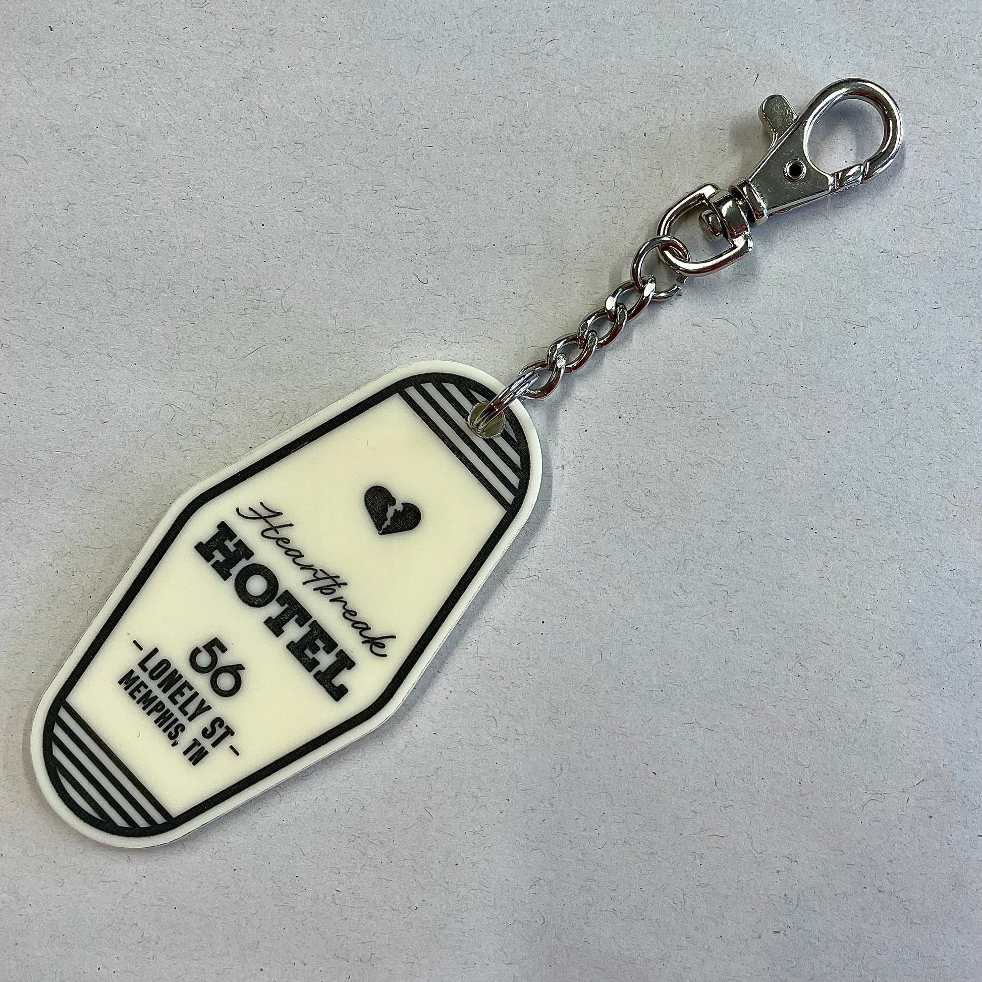 Retro motel style keyring - heartbreak hotel