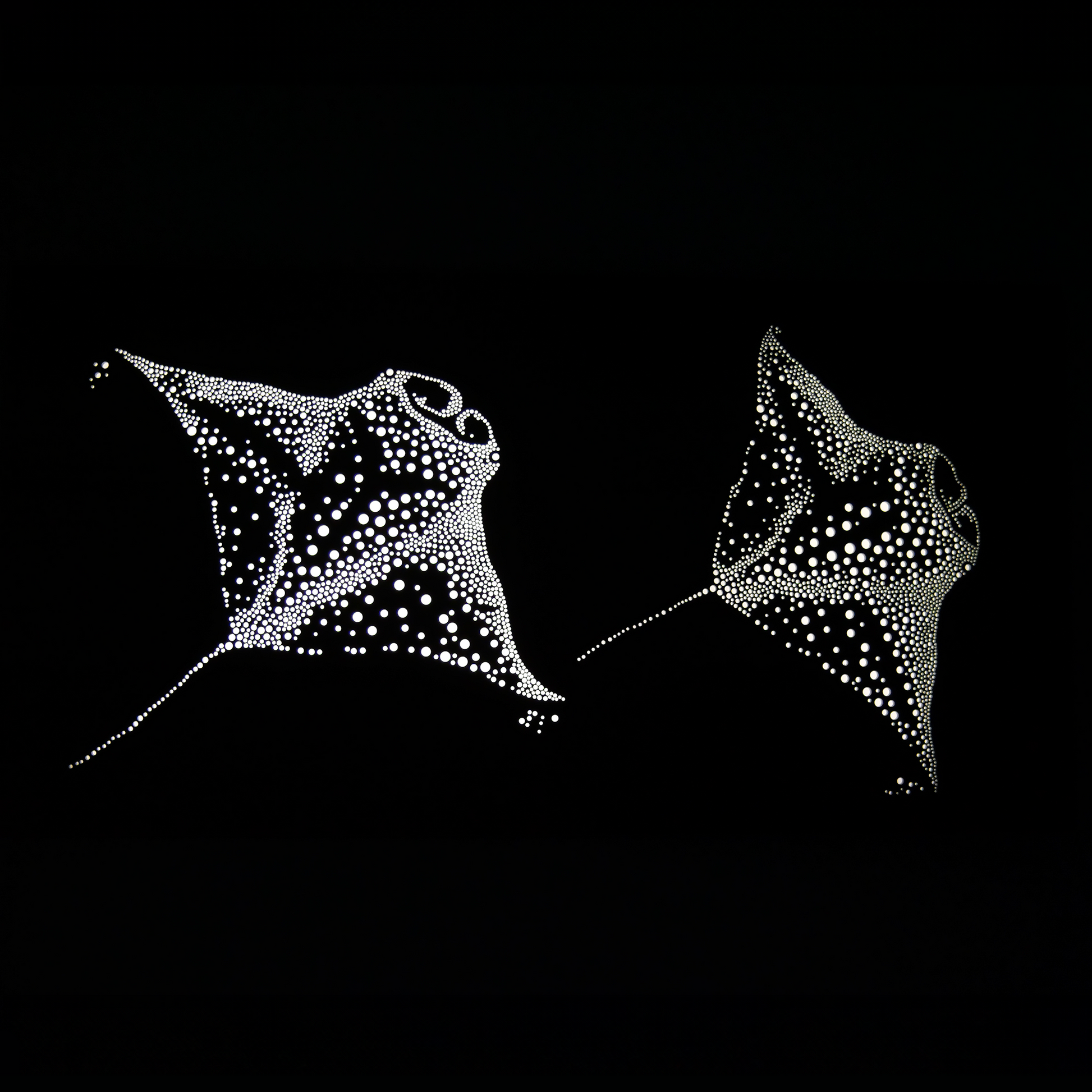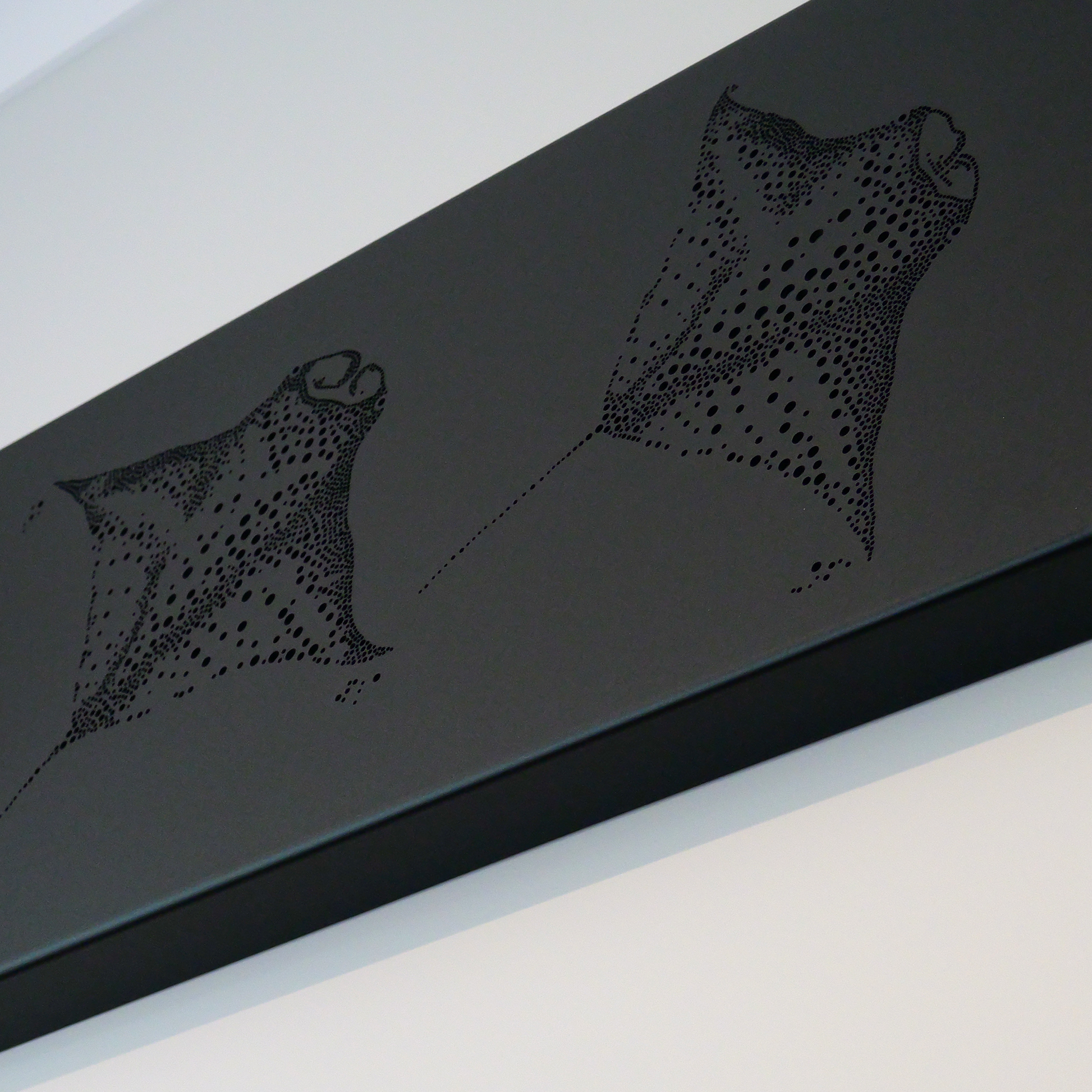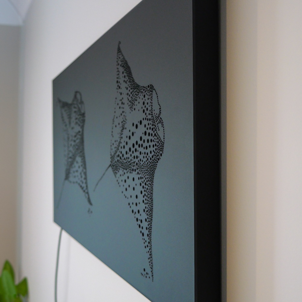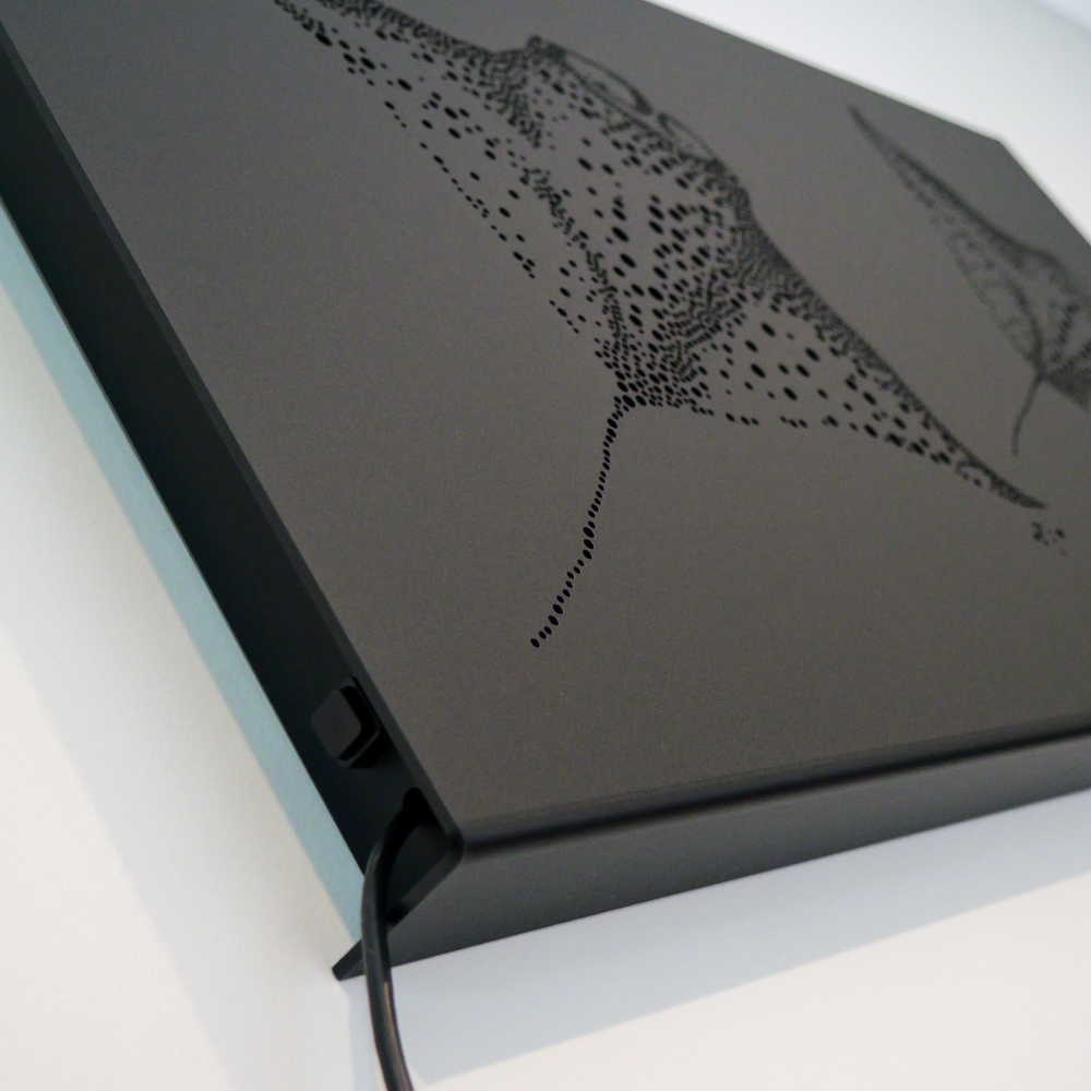 Let The Rays light up your space! With hand-drawn circles creating two majestic manta rays, this lightbox will bring atmosphere straight out of the ocean. Powered by LEDs, it's perfect for any room.