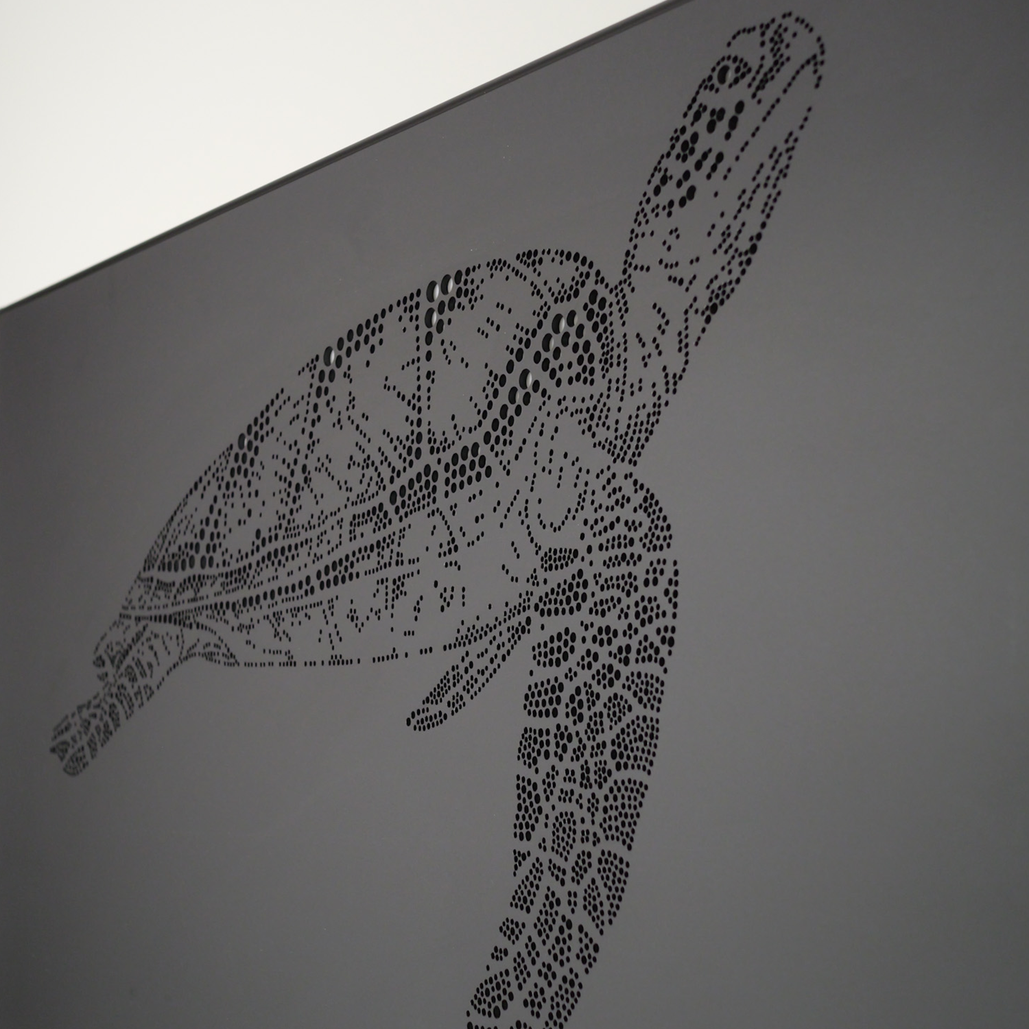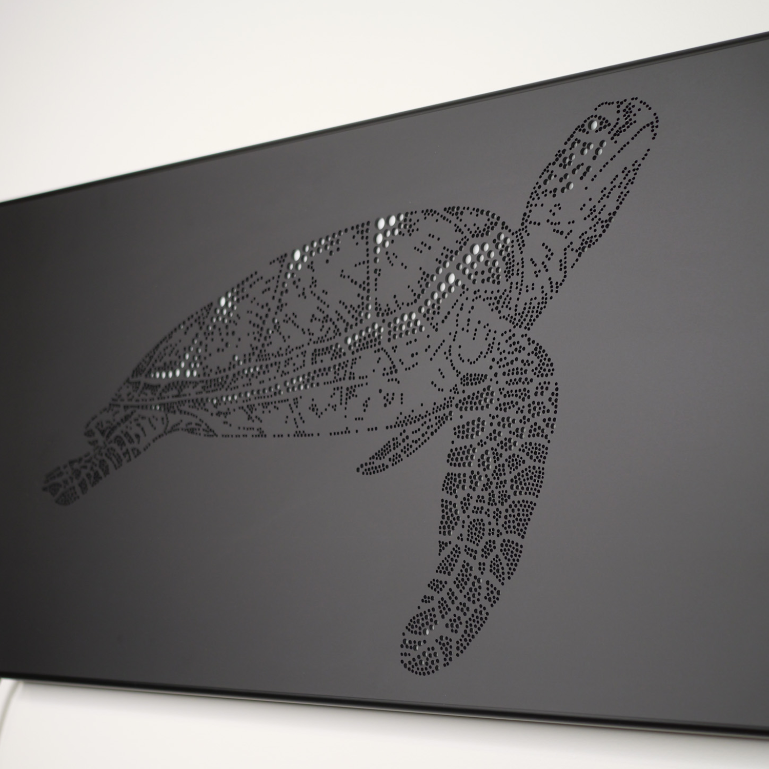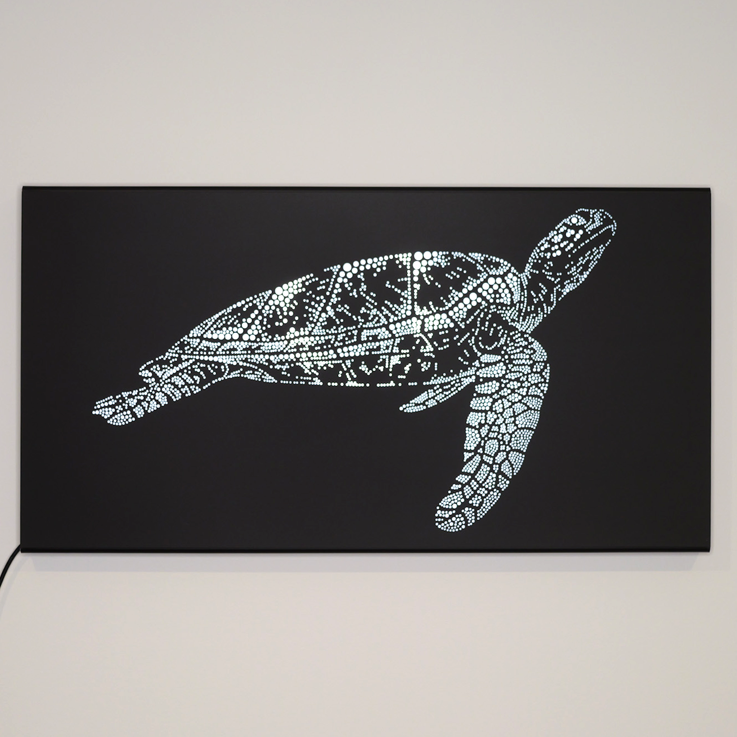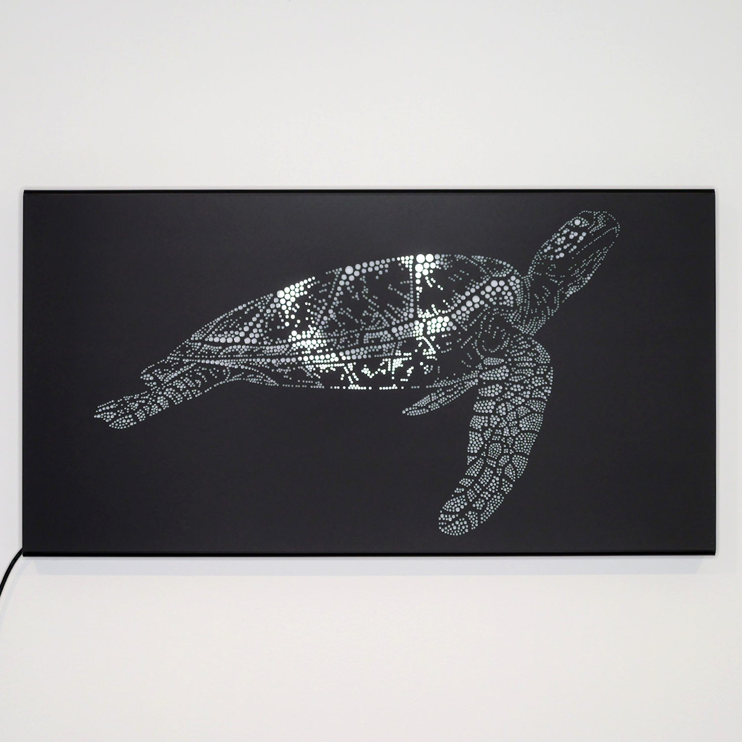Bring the ocean into your home with 'The Turtle', featuring a hand drawn pointillism style circles creating a whale shark silhouette, crafted into light box art.